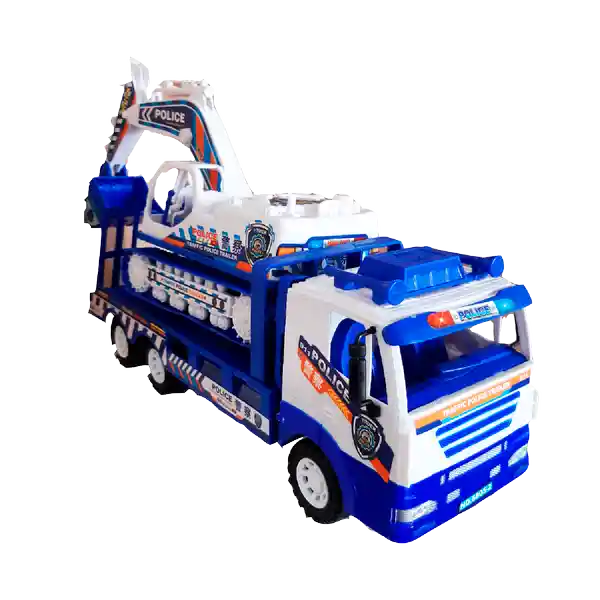 Camión De Juguete Policía Remolque Grúa + Excavadora