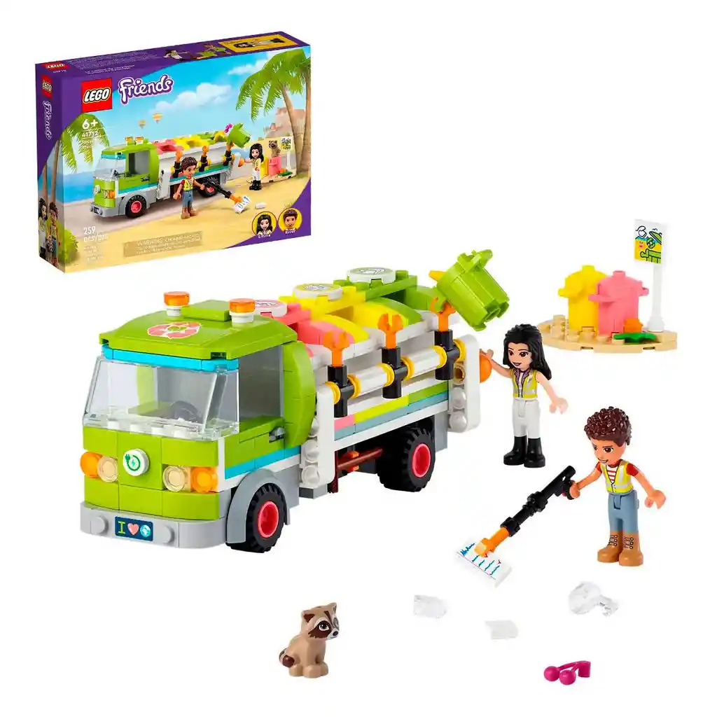 ¿Buscas un juguete divertido para una niña mayor de 6 años concienciada con el medioambiente? El Camión de Reciclaje (41712) es para ella. Las peques recorrerán la playa con LEGO® Friends Emma y River, y recogerán la basura para proteger a los animales salvajes. Este set de juguetes de gestión de residuos incluye 3 cubos para clasificar el papel, los residuos orgánicos y el vidrio. Contiene también fantásticos accesorios para dar vida al juego, como una pala y una pinza de juguete. El Camión de Reciclaje cuenta con un brazo móvil donde enganchar los cubos para verter el contenido en los contenedores. Potencia la construcción con herramientas digitales Este estupendo regalo viene con una guía paso a paso en imágenes y, además, con instrucciones de construcción digitales. Disponibles en la app gratuita Instrucciones de Montaje LEGO para smartphones y tabletas, las intuitivas herramientas de acercamiento y giro permiten a las niñas visualizar el modelo terminado mientras lo construyen. • Un juguete divertido para niñas concienciadas: Ayuda a tu peque a interpretar su sueño de vivir en un planeta limpio con el set LEGO® Friends Camión de Reciclaje (41712), que le enseña a clasificar residuos y a proteger a los animales salvajes. • Como si fuera de verdad: El camión de gestión de residuos de juguete cuenta con contenedores extraíbles, asientos en la cabina para los 2 minipersonajes, un brazo abisagrado que eleva los cubos de basura y una figura de un mapache. • Interpreta situaciones del mundo real: Las niñas ayudarán a LEGO® Friends Emma y River a recoger los desperdicios con la pinza y la pala de juguete, a clasificar los residuos y a enganchar los cubos de basura al camión. • Para niñas y niños a partir de 6 años: Un regalo para peques que se preocupan por el medioambiente o que disfrutan construyendo modelos de vehículos realistas. • Vistosa pieza de exposición: Este camión de la basura, que mide aproximadamente 7 cm de altura, 15 cm de longitud y 6 cm de anchura, ocupa poco espacio aparcado junto a los demás modelos de vehículos de las peques. • Guía de construcción interactiva: La app Instrucciones de Montaje LEGO® para smartphones y tabletas permite a las niñas visualizar, acercar y girar el modelo desde todos los ángulos mientras lo construyen. • Para aprender jugando: Los sets LEGO® Friends ayudan a las pequeñas constructoras a reforzar su confianza y desarrollar habilidades fundamentales para la vida con modelos realistas y divertidos personajes que promueven el juego libre y creativo. • Regalos de máxima calidad: Todos los componentes LEGO® cumplen estrictas normas del sector, por eso ofrecen siempre las mismas cualidades, son compatibles entre sí y proporcionan una entretenida experiencia de construcción; así ha sido desde 1958. • La seguridad es lo primero: Los elementos y ladrillos de los sets LEGO® Friends se dejan caer, se calientan, se aplastan, se retuercen y se analizan para verificar que satisfacen rigurosos estándares mundiales de seguridad."