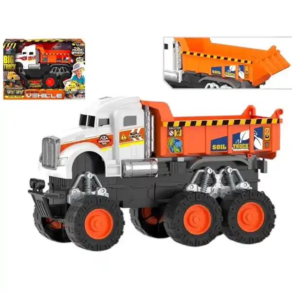 Este increíble camión Monster Truck Tolva de Volteo 38 cm a friccion está diseñado para la acción y el juego pesado.Por lo que se impulsa fácilmente hacia adelante sin necesidad de baterías. Su tolva trasera permite cargar y descargar como en un verdadero camión de obra. Escala 1:12 Medidas: 40x28cm caja