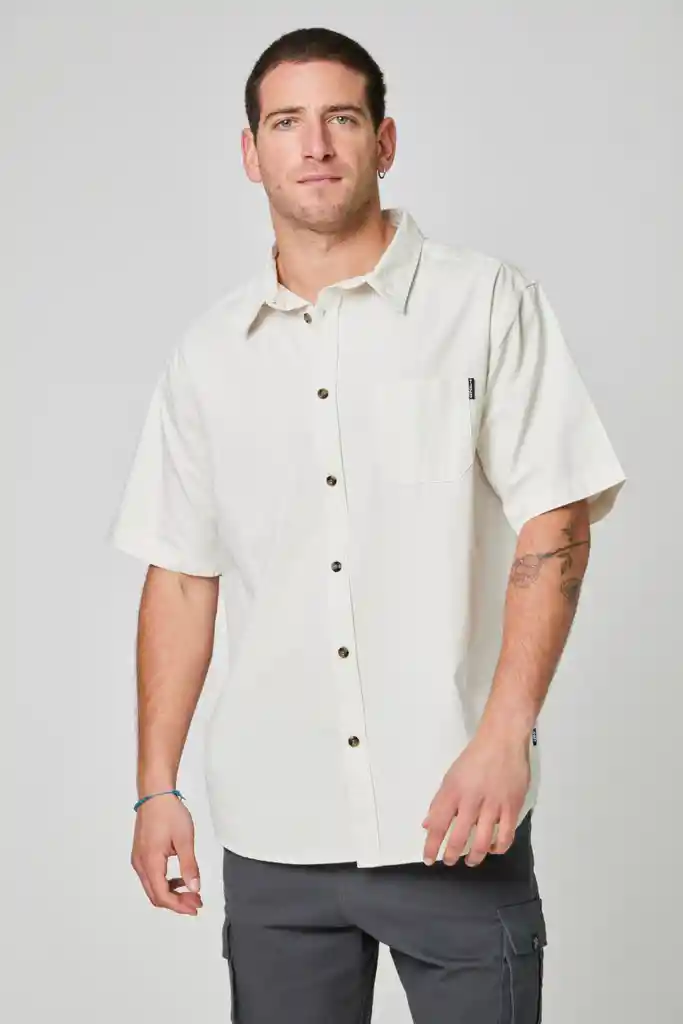 Camisa solid manga corta, estructurada y de calce holgado. 100% algodón reciclado. Ideal para toda ocasión, perfecta para esos eventos en que necesitas estar un poco más arreglado