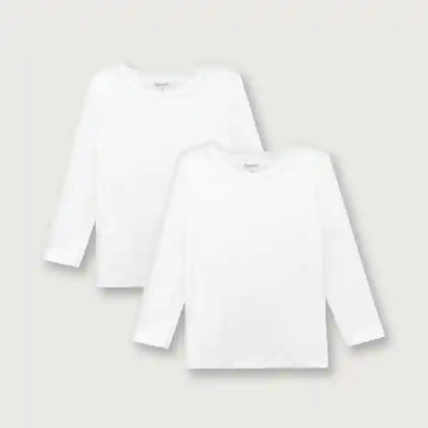 Contiene 2 Unidades. Algodón Peruano Manga Larga Con Broches en el Hombro. Ambas Son de Color Blanco.
