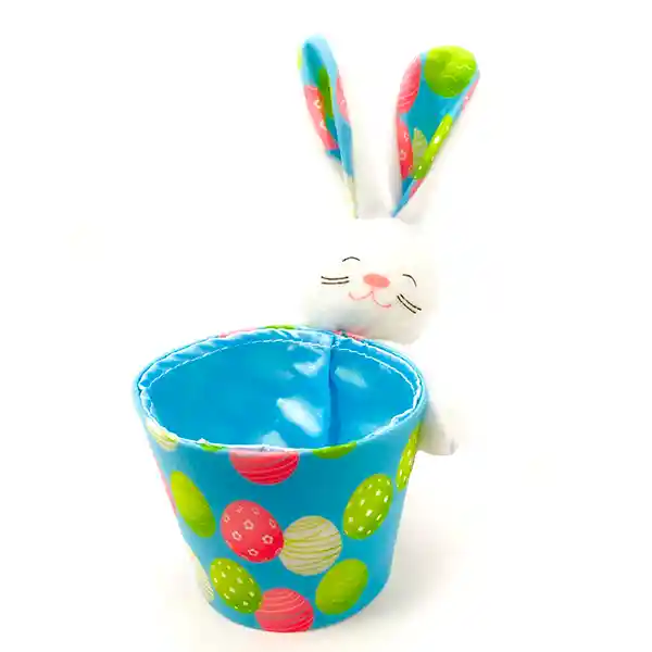 Canasto Pascua de resurrección huevitos impresos. Mide 7.5x10x20 cm aproximadamente.