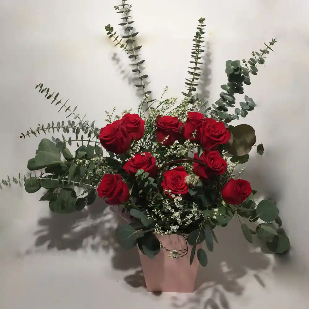 Canasto De Flores Rosas Rojas