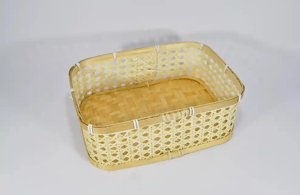 Canasto de Bamboo tejido. Diseño rectangular. Mide 20X28cm y 10cm de alto.