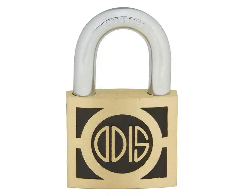 Candado de Seguridad Profesional marca ODIS de 40mm Serie 300 - Modelo 340 Fabricado en cuerpo de bronce forjado a 135 toneladas. Gancho de acero endurecido con proceso de carbonitruración y protección galvanoplástica contra la corrosión. Sistema de cierre automático con traba de doble eslabón. Sistema de cerradura con 5 clavijas. Empaque en blister Características: – Cuerpo de bronce forjado – Gancho de acero al manganeso – Sistema de cierre con traba de doble eslabón. – Incluye 4 copias de llave estándar. – Resistencia al corte de gancho por compresión. – Resistencia a la tracción del gancho. – Resistencia al corte de sierra
