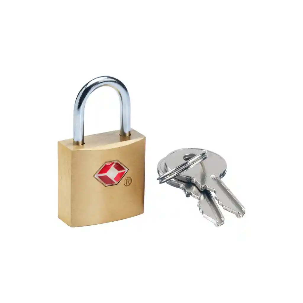 Sólido y seguro, este candado de latón aceptado por la TSA asegura su equipaje en tránsito. Diseñado para adaptarse a todo equipaje con cierre, se fija en segundos a cualquier maleta o bolsa para viajes. Ideal para viajes a Estados Unidos, este candado de equipaje permite al personal de seguridad de USA examinar su equipaje sin daños. Material: acero, latón Cantidad: 1 Incluye: 2 llaves Con sistema TSA. Medidas del Producto: 2,18 x 3,8 x 1,35 cm. Peso: 40 gr. Medidas del empaque: 14 x 8 x 1,5 cm. Importante: Este candado con TSA permite que las autoridades de seguridad de los aeropuertos puedan abrirlo para inspeccionar el equipaje sin romperlo. Importante: Los países que han implementado la tecnología TSA a la fecha son: EEUU., Canadá, Suiza, Austria, Holanda, Finlandia, Israel, Corea y Japón.