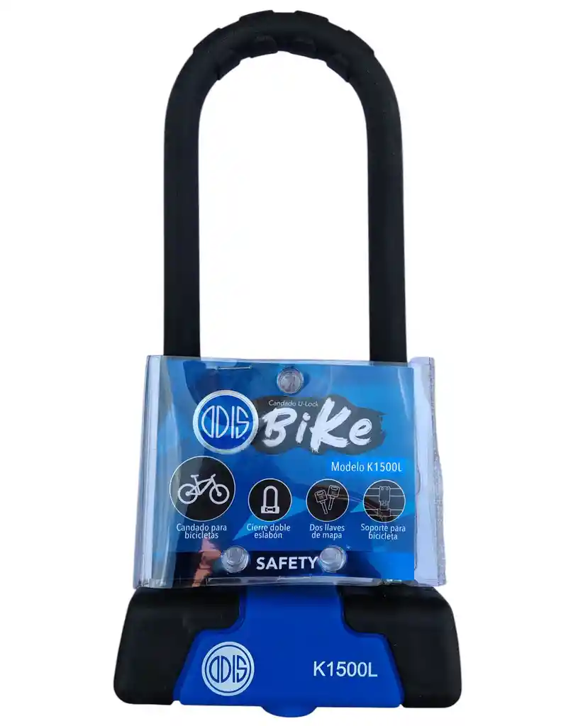 Los Candados de la Serie Safety son robustos. Permiten asegurar la bicicleta y/o la rueda a un punto de fijación (luminaria pública, estacionamientos de bicicletas, otros) de forma rápida. -Incluye 2 Llaves de mapa. -Cuerpo de aleación de zinc con funda plástica soft (silicona). -Doble eslabón. -Gancho de aleación especial de 15mm (total considerando la funda plástica protectora). -Incluye soporte para fijación a bicicleta.