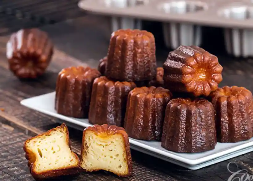 Presenta un característico aspecto cilíndrico con bordes estriados. Su exterior es caramelizado y no crujiente mientras que su interior suave y gomoso, con un sabor de vainilla y ron. Bizcocho típico de la ciudad francesa de Burdeos. 70g