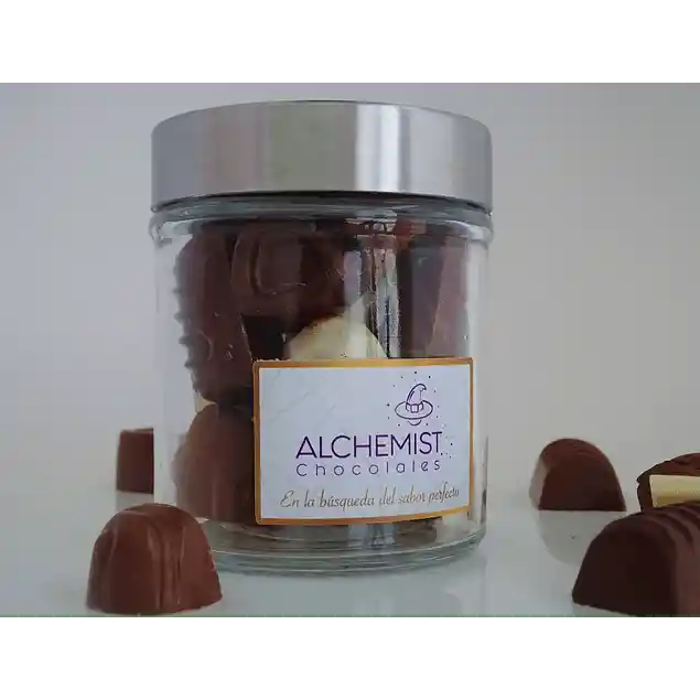 Canister con un mix de bombones y chocolates rústicos 200g especial para regalar