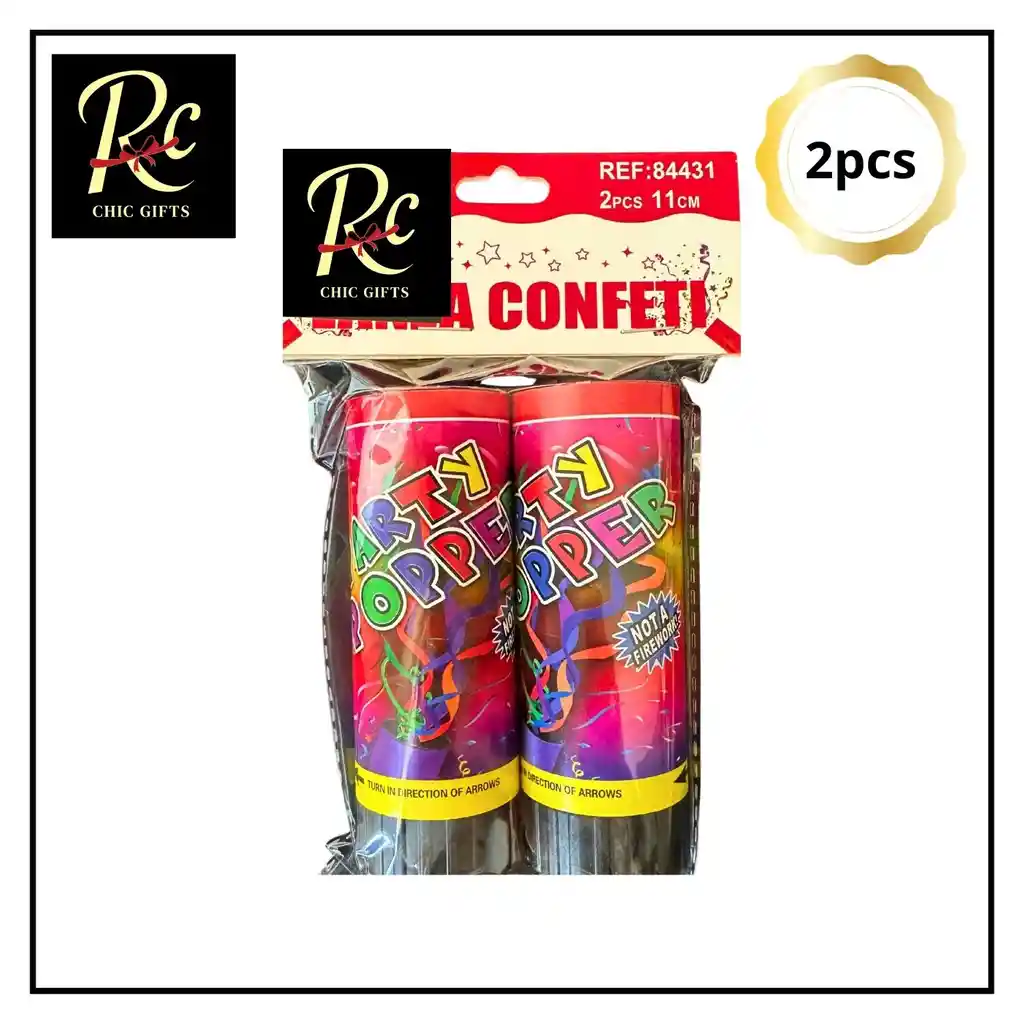 "¡Celebra a lo grande con el cañón de confeti de fiesta de Regalos Chic! ¿Quieres añadir un momento de alegría y emoción a tu celebración? Este Party Popper es la forma más divertida y segura de lanzar una lluvia de confeti y serpentinas multicolores, haciendo de cualquier evento un instante inolvidable. ¡Haz que el momento especial sea aún más mágico! Simplemente gira la base y observa cómo una explosión de color llena el aire, creando un efecto espectacular perfecto para fotos, videos y para sorprender a todos tus invitados. Es el accesorio ideal para el clímax de tu fiesta. Beneficios Clave: Fácil de Usar: No requiere pólvora ni pirotecnia. Su mecanismo de aire comprimido es seguro y sencillo, solo gira y listo. Explosión de Color: El cañón lanza una mezcla de confeti y serpentinas de colores brillantes, llenando el espacio de alegría y festividad. Tamaño Práctico: Con 11 cm de alto, es fácil de sostener y usar con una mano, ideal para niños y adultos. Pack de 2: Viene en un set de dos unidades para que puedas compartir la diversión o usar uno en un momento y otro para el gran final. Características del Producto: Producto: Cañón de confeti Party Popper. Contenido: Mezcla de confeti y serpentinas de colores. Medidas: 11 cm de alto. Uso: Lanzador de confeti para fiestas, cumpleaños, bodas, graduaciones, y más. cañón de confeti Party Popper para fiesta lanzador de confeti cañón para fiestas serpentinas de colores accesorios de cumpleaños decoración para eventos cañón de aire comprimido ¡Haz que tu celebración sea inolvidable! Consigue este cañón de confeti en Regalos Chic y prepárate para un momento lleno de color y alegría."