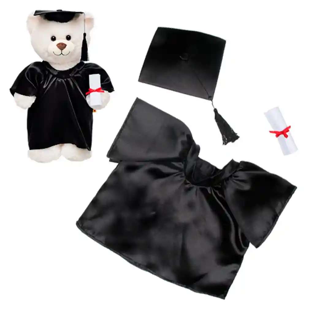 Llego el día más especial ¡Es tu Graduación! Mucho tiempo de esfuerzo y dedicación al fin rinden frutos y tu mejor AmigOso quiere ser parte de esta experiencia única. Completa el regalo perfecto agregando a tu compra increíbles accesorios, haciendo de tu regalo algo más especial, único y completamente personalizado. Agrega a tu compra, esta hermosa y especial Capa de Graduación Negra de Satén ideal para amiguitos de peluche Build a Bear. Haz que tu regalo sea algo extra único ¿Qué estas esperando? ¡Desea lo mejor con un regalo de Graduación muy especial!