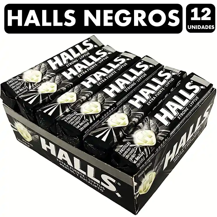 Exquisitos caramelos Halls Negros extra fuerte sabor menta. Estos caramelos te entregarán un nivel de frescura inigualable en cualquier momento del día. Esta caja contiene 12 unidades de 26 grs. cada una, las que cuentan con una envoltura individual que mantiene todo su sabor y frescura y las hace ideales para llevarlas a donde tú quieras. Este clásico de clásicos podrás compartirlo con tus amigos o familia y tener un grato momento, sobre todo con los amantes de los dulces. Todos nuestros productos tienen una frescura inigualable ya que renovamos constantemente nuestro stock. Además, cuentan con envasado y sellado de fábrica que permiten conservar el producto fresco e ideal para tu consumo.