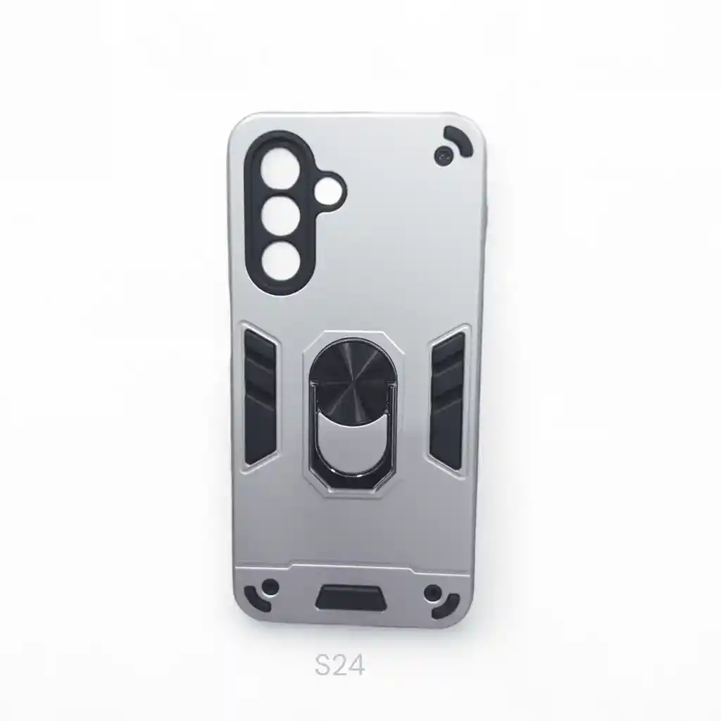 Carcasa resistente con diseño antigolpe y anillo metálico giratorio para mejor agarre y soporte, ideal para uso diario.