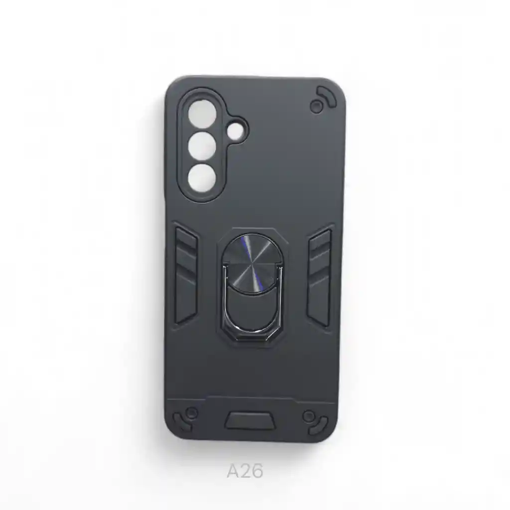 Carcasa resistente con bordes reforzados y anillo metálico, pensada para proteger ante caídas y golpes.
