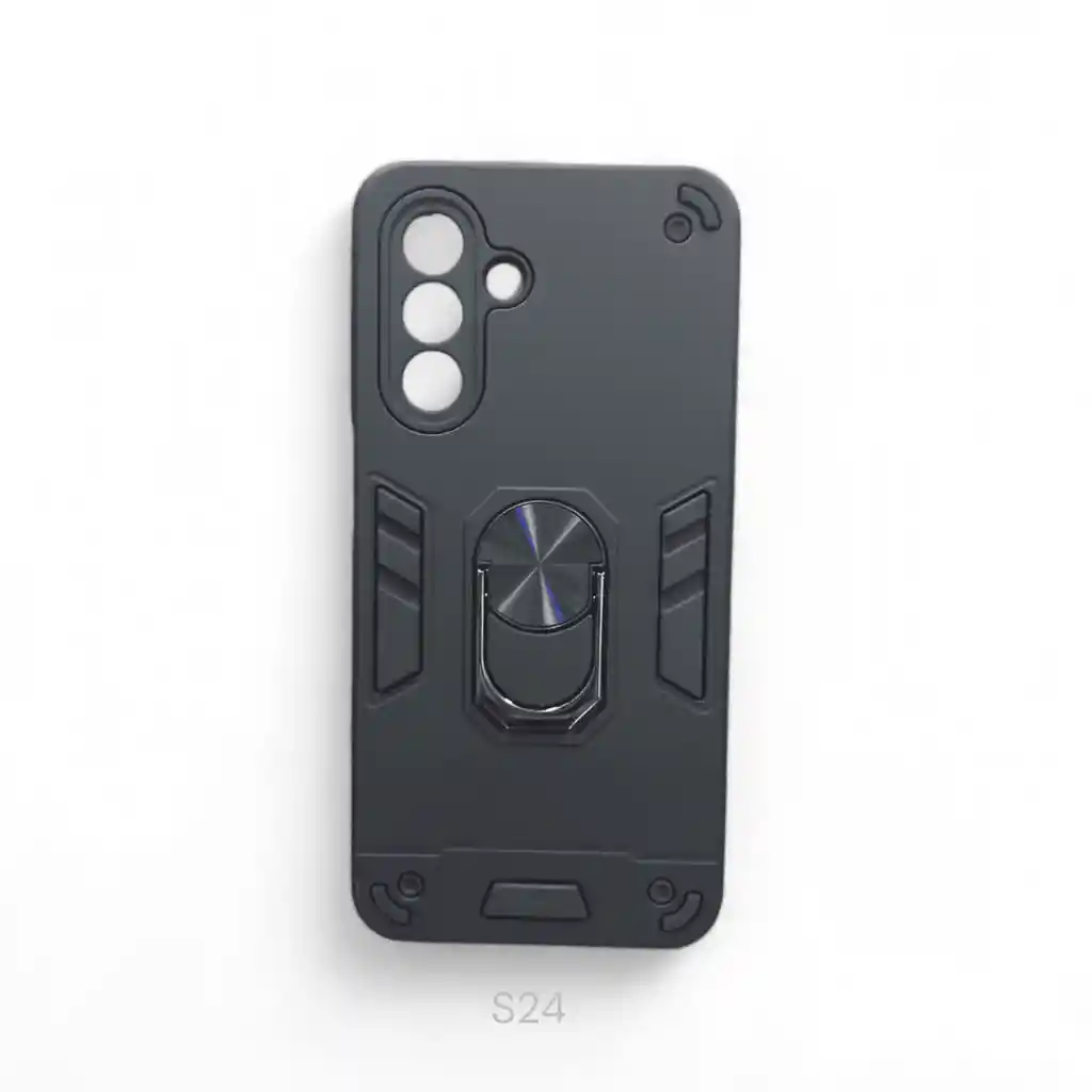 Carcasa de alta protección con acabado mate, refuerzos en esquinas y anillo giratorio integrado que facilita el uso y brinda mayor seguridad al sostener el teléfono.