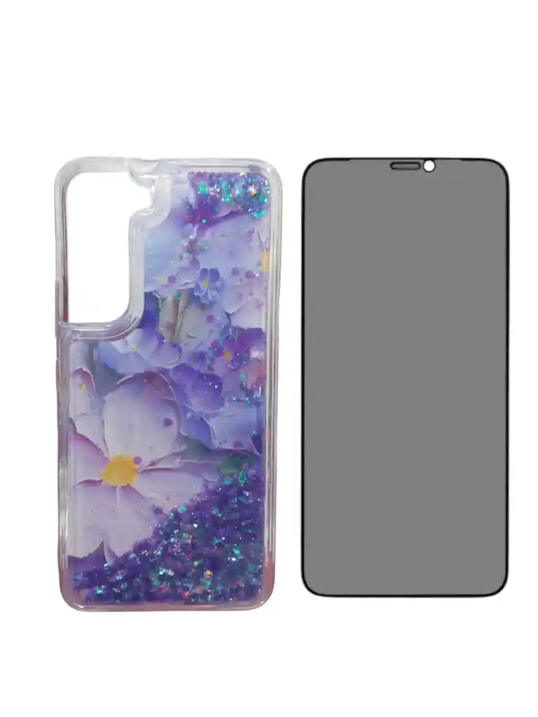 Carcasa con brillos flotantes llamativos incluye lámina de vidrio antiespía para protección total.