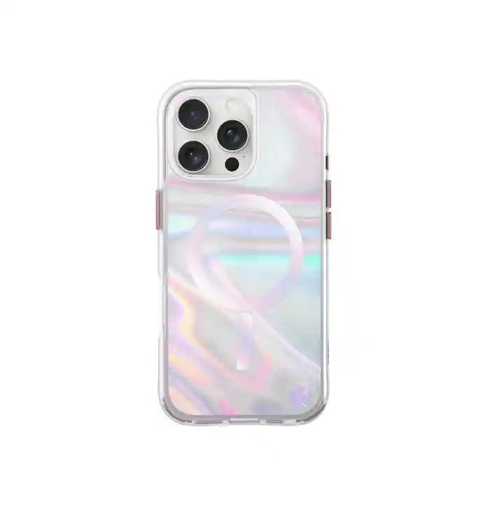 Carcasa Coehl Savon iPhone 16 Pro Max - Magsafe Imagine un brillo holográfico que refleja la danza de la luz sobre las burbujas de jabón y refleja colores iridiscentes con cada suave movimiento. Savon captura esta magia fugaz, brillando como un delicado arcoíris con cada sutil movimiento. Características: • Protección translúcida con defensa híbrida superior contra impactos • Protección que absorbe los golpes con bisel elevado para la lente de la cámara • Parte posterior resistente a la decoloración con parachoques flexible • Botones laterales metálicos táctiles a juego • Diseñado para soportar impactos de caídas de hasta 2.4 metros • Admite carga inalámbrica magnética y accesorios