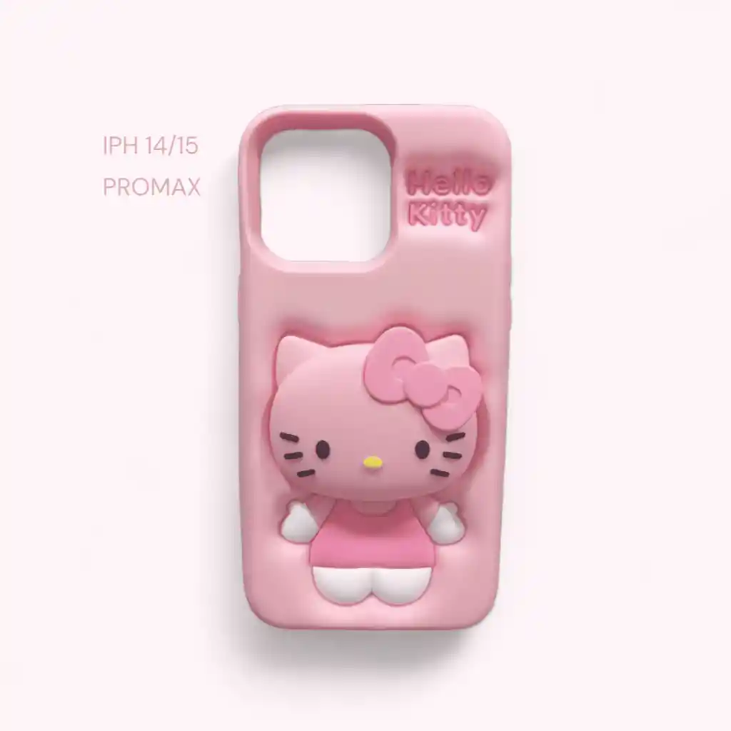 Carcasa de silicona suave con diseño 3D Hello Kitty, protección completa y acabado tierno para un estilo único.