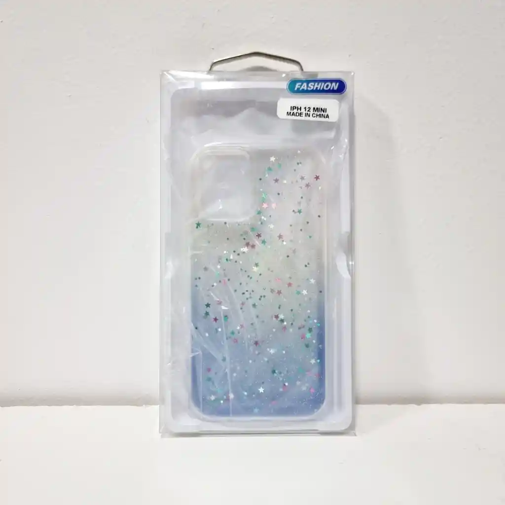 Carcasa Iphone 12 mini transparente brillo azul celular