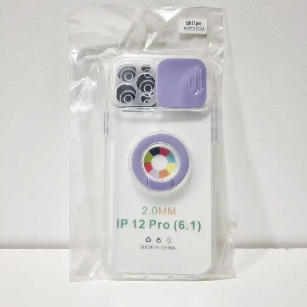 Carcasa Iphone 12 y 12 Pro transparente con tapa morado celular