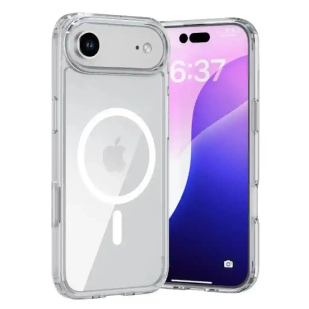 Carcasa Transparente con MagSafe para iPhone Protege tu iPhone con estilo y funcionalidad. Esta carcasa transparente con tecnología MagSafe está diseñada para ajustarse a distintos modelos de iPhone, manteniendo el diseño original del equipo mientras lo protege de golpes, caídas y rayones. Características principales Compatibilidad con MagSafe: carga inalámbrica rápida y segura sin retirar la carcasa. Diseño transparente y delgado: muestra el color original del iPhone. Esquinas reforzadas: mayor protección ante impactos. Material resistente: policarbonato + TPU flexible, pensado para evitar el amarillamiento. Ajuste preciso: acceso cómodo a botones, cámara y puertos. Compatible con iPhone con MagSafe (modelos recientes y anteriores). Importante: selecciona tu modelo de iPhone en las opciones del producto para recibir la carcasa correcta.