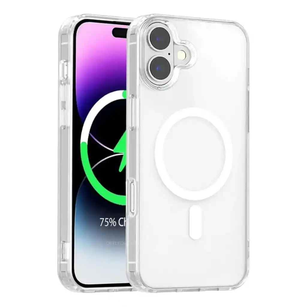 Carcasa Transparente con MagSafe para iPhone Protege tu iPhone con estilo y funcionalidad. Esta carcasa transparente con tecnología MagSafe está diseñada para ajustarse a distintos modelos de iPhone, manteniendo el diseño original del equipo mientras lo protege de golpes, caídas y rayones. Características principales Compatibilidad con MagSafe: carga inalámbrica rápida y segura sin retirar la carcasa. Diseño transparente y delgado: muestra el color original del iPhone. Esquinas reforzadas: mayor protección ante impactos. Material resistente: policarbonato + TPU flexible, pensado para evitar el amarillamiento. Ajuste preciso: acceso cómodo a botones, cámara y puertos. Compatible con iPhone con MagSafe (modelos recientes y anteriores). Importante: selecciona tu modelo de iPhone en las opciones del producto para recibir la carcasa correcta.
