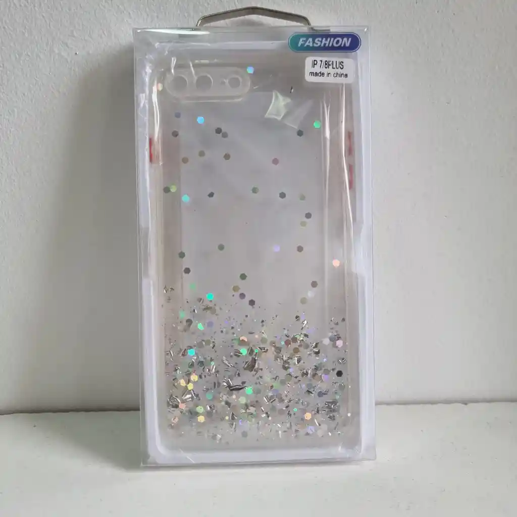 Carcasa Iphone 7 y 8 diseño transparente con brillo plateado celular