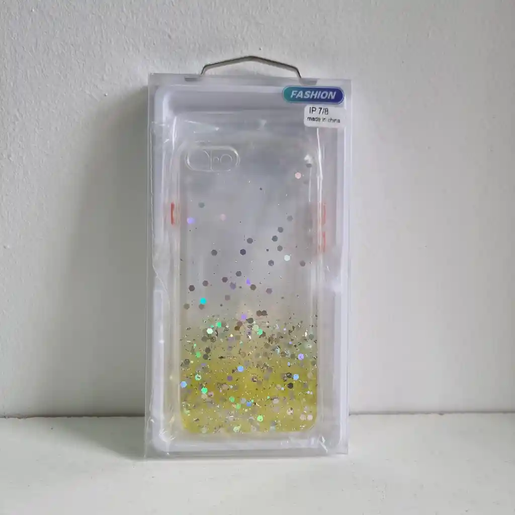 Carcasa Iphone 7 y 8 diseño transparente con brillo amarillo celular