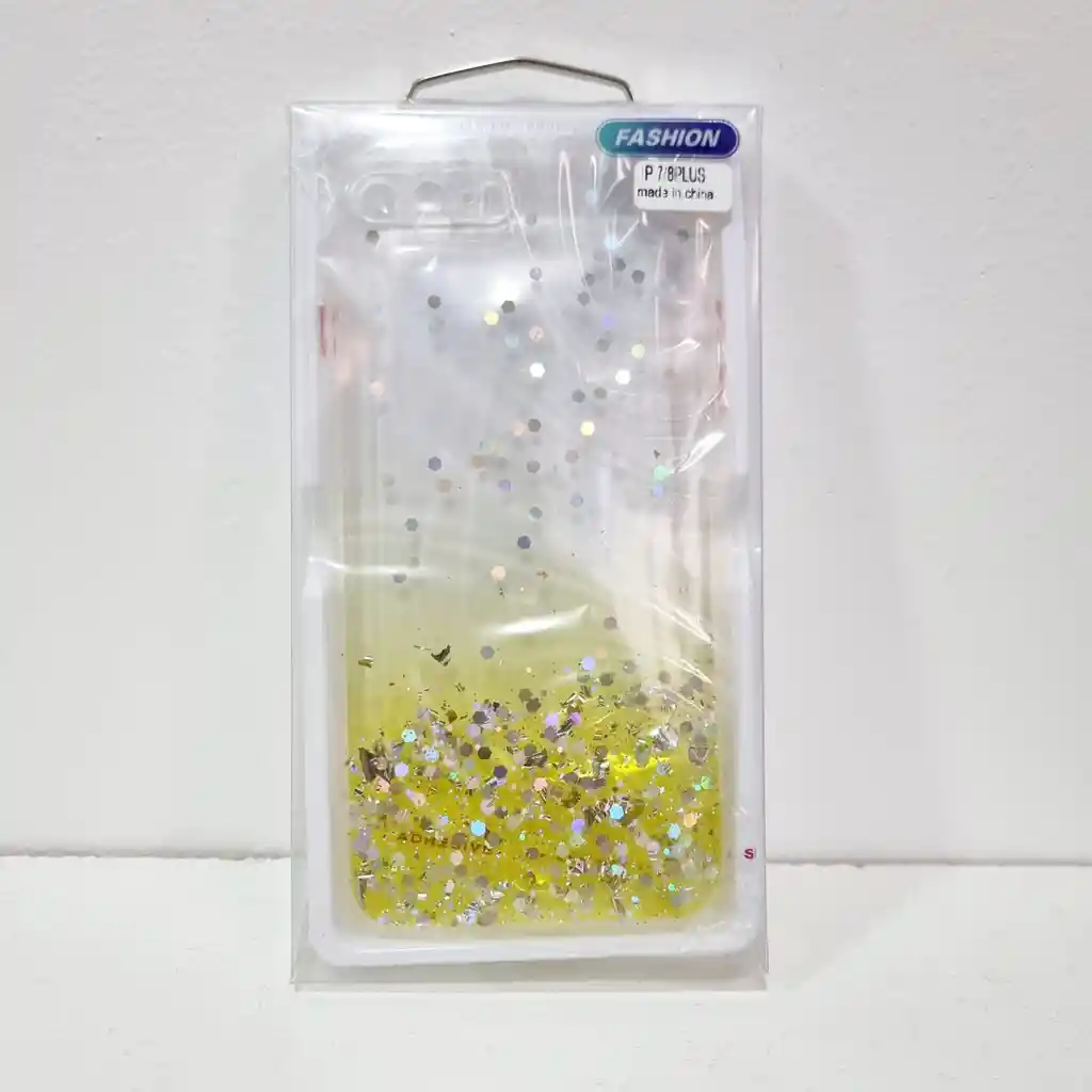 Carcasa Iphone 7 Plus o 8 Plus diseño transparente con brillo amarillo celular