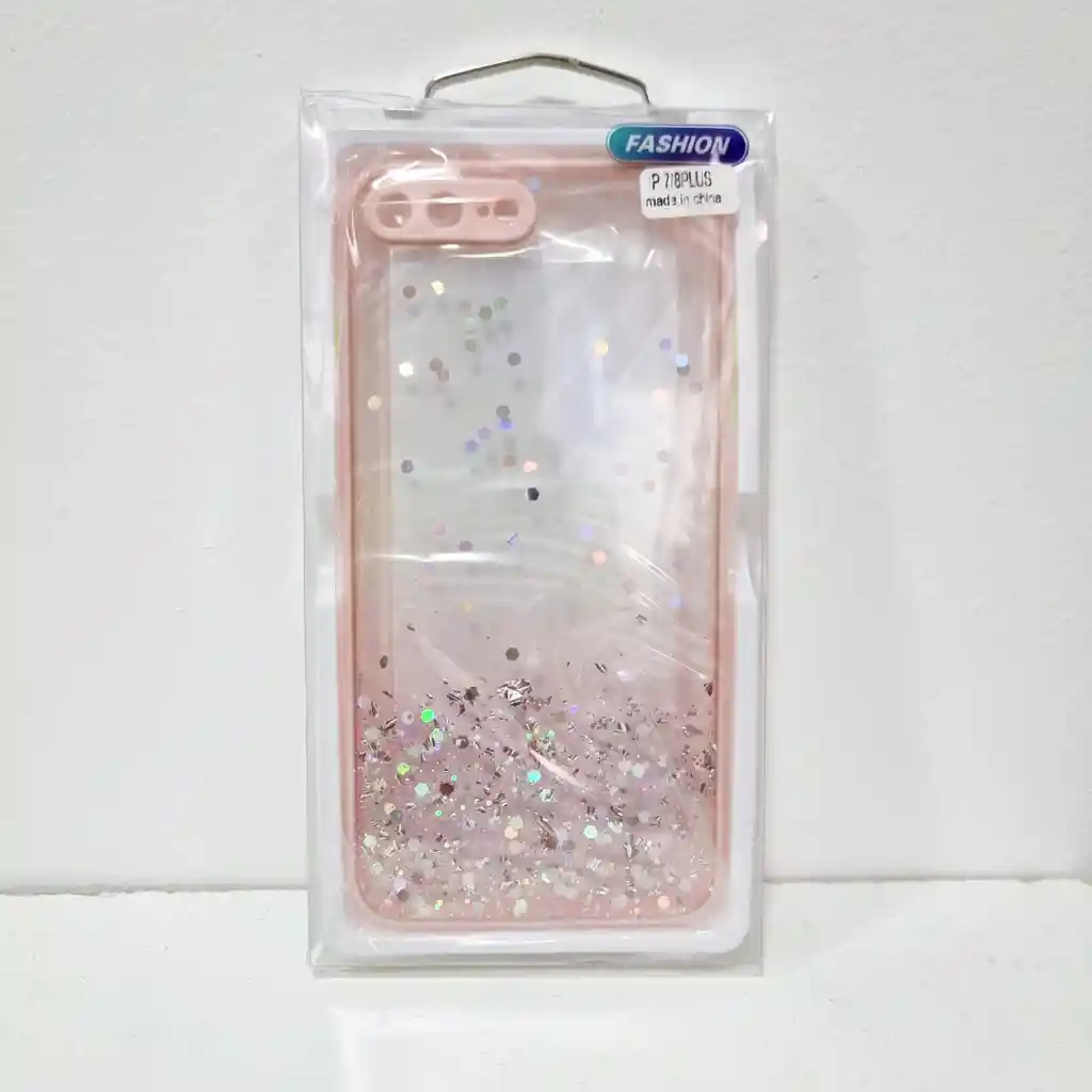 Carcasa Iphone 7 Plus o 8 Plus diseño transparente con brillo rosado celular