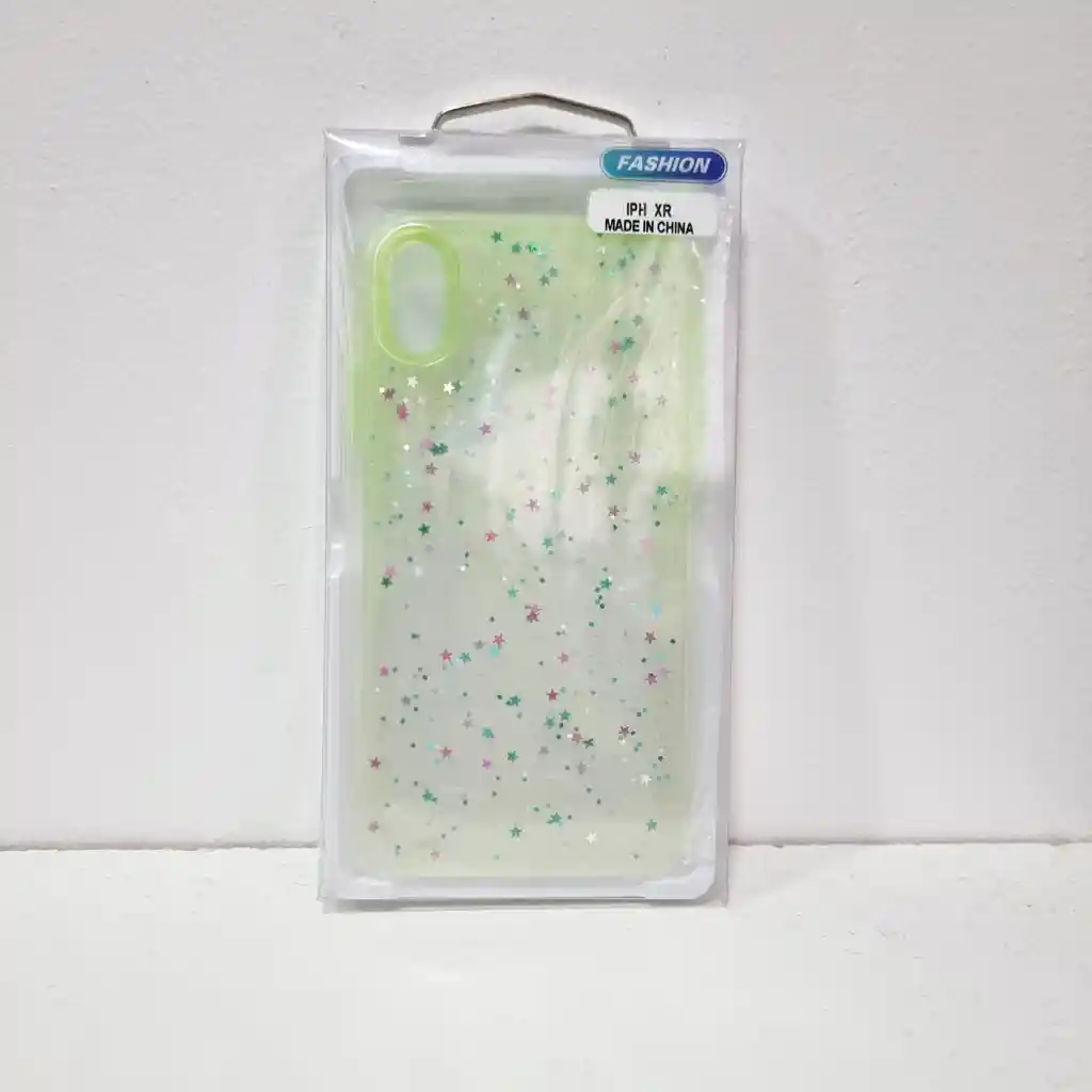 Carcasa Iphone Xr diseño transparente con brillo verde celular