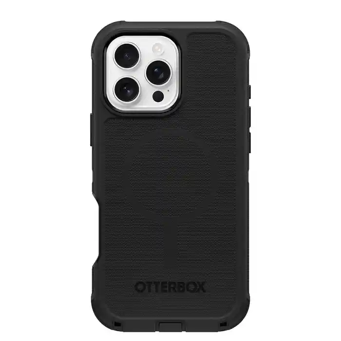 Carcasa iPhone 16 Pro Otterbox Defender Magsafe - Color Negro Para defensas contra caídas de estándar militar 7X, elija Defender MagSafe, nuestra funda para iPhone 16 Pro más resistente hasta el momento. Está equipado con esquinas que absorben los golpes, textura completa para un mayor agarre, imanes MagSafe integrados y anclajes integrados para conectar correas de teléfono. Apertura diseñada con precisión para una fácil interacción con el Control de Camara sin comprometer la protección. Defensa de tres capas con una cubierta de silicona para resistir golpes, una carcasa interior rígida para mantener el teléfono en su lugar y un respaldo de espuma viscoelástica para mayor estabilidad. La textura integral brinda un mayor agarre que ayuda a prevenir caídas antes de que ocurran. Las cubiertas de puertos bloquean el polvo y la suciedad. Los imanes incorporados se ajustan firmemente a los cargadores y accesorios MagSafe Las esquinas rediseñadas están reforzadas para brindar mayor amortiguación y facilitar el almacenamiento. Los anclajes incorporados te permiten conectar las correas del teléfono para evitar caídas. El borde de la pantalla mantiene la pantalla suspendida de forma segura fuera de las superficies. Enganche para cinturones o bolsos y funciona como soporte para manos libres. Los imanes incorporados se ajustan firmemente a los cargadores y accesorios MagSafe. Funciona con protectores de pantalla