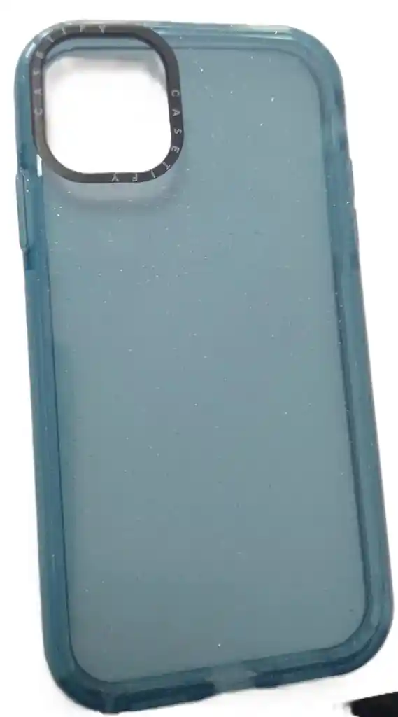 Carcasa para iphone 11, material silicona, con bordes internos reforzados, color azul translucido con pequeños brillos.