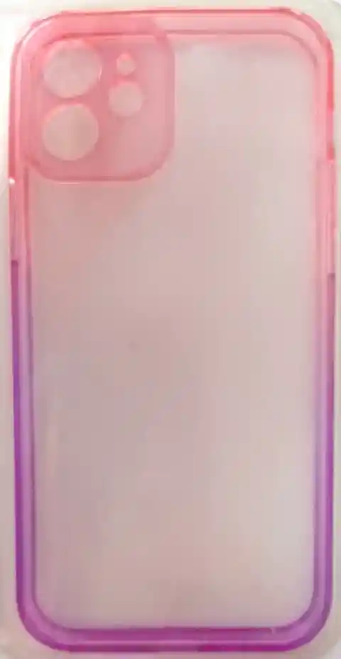 Carcasa silicona para IPhone 12, translucida con suaves tonalidades rosadas y moradas.