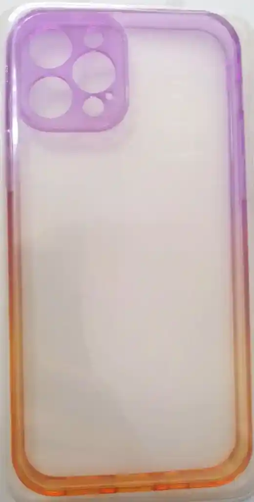 Carcasa silicona para IPhone 12Pro, translucida con suaves tonalidades moradas y naranjas.