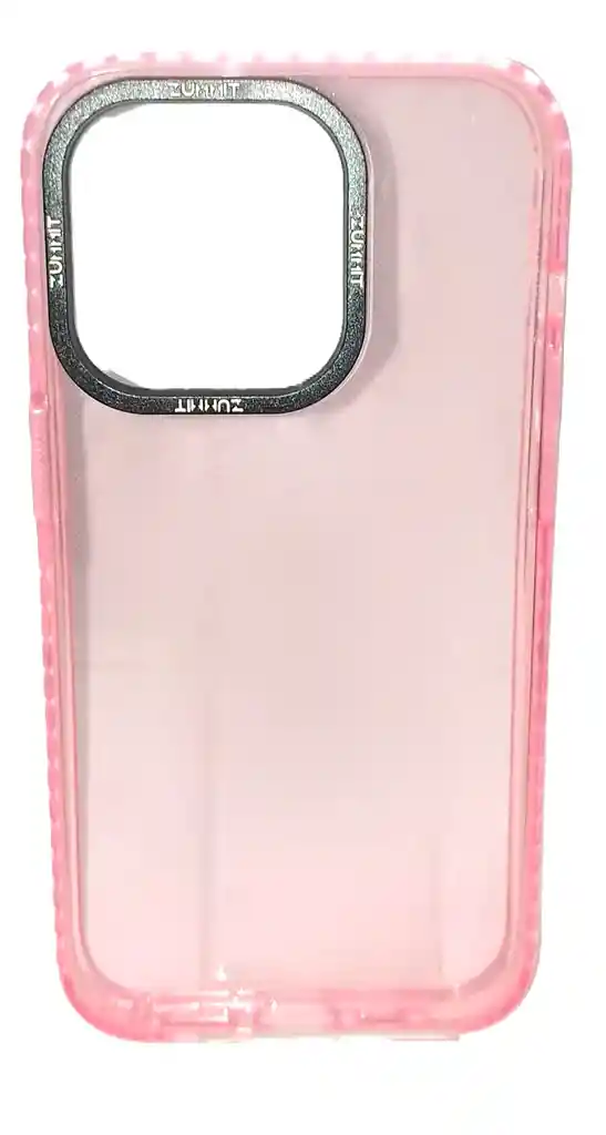 Carcasa para iPhone 13, material silicona, muy buenas terminaciones, con bordes internos reforzados, color rosado translucido.