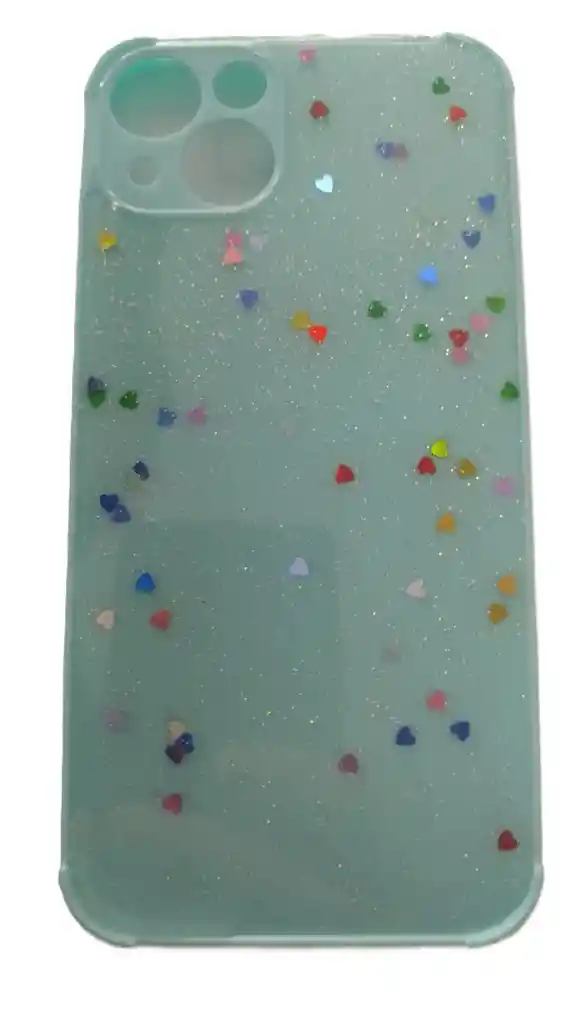 Carcasa material tpu, para IPhone 13, color azul celeste, con brillos de colores.