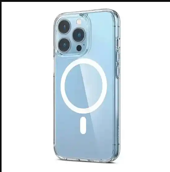 Funda reforzada, con un diseño moderno de material transparente, cuenta con un anillo magnético especial para carga magsafe. Firme, de larga duración, de fácil acceso a conector de carga.