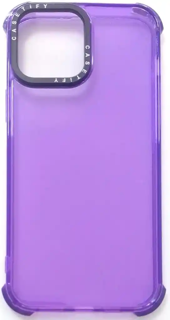 Carcasa para iPhone 14, con bordes internos reforzados, material silicona, color morada.
