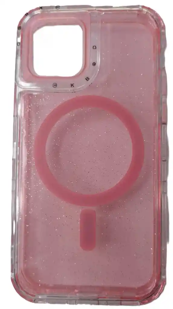Carcasa para IPhone 14 Plus, protección 360, material Silicona y tpu, con las 4 esquinas reforzadas, color rosada con brillitos, 3 capas de protección, con aro apto para carga inalámbrica.