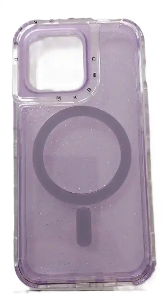 Carcasa para IPhone 14 Plus, protección 360, material Silicona y tpu, con las 4 esquinas reforzadas, translucida, color lila, con brillitos, 3 capas de protección, con aro apto para carga inalámbrica.