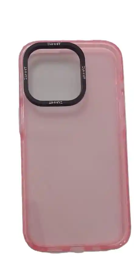 Carcasa para iPhone 14 Pro, con bordes internos reforzados, material silicona, translucida, color rosada.