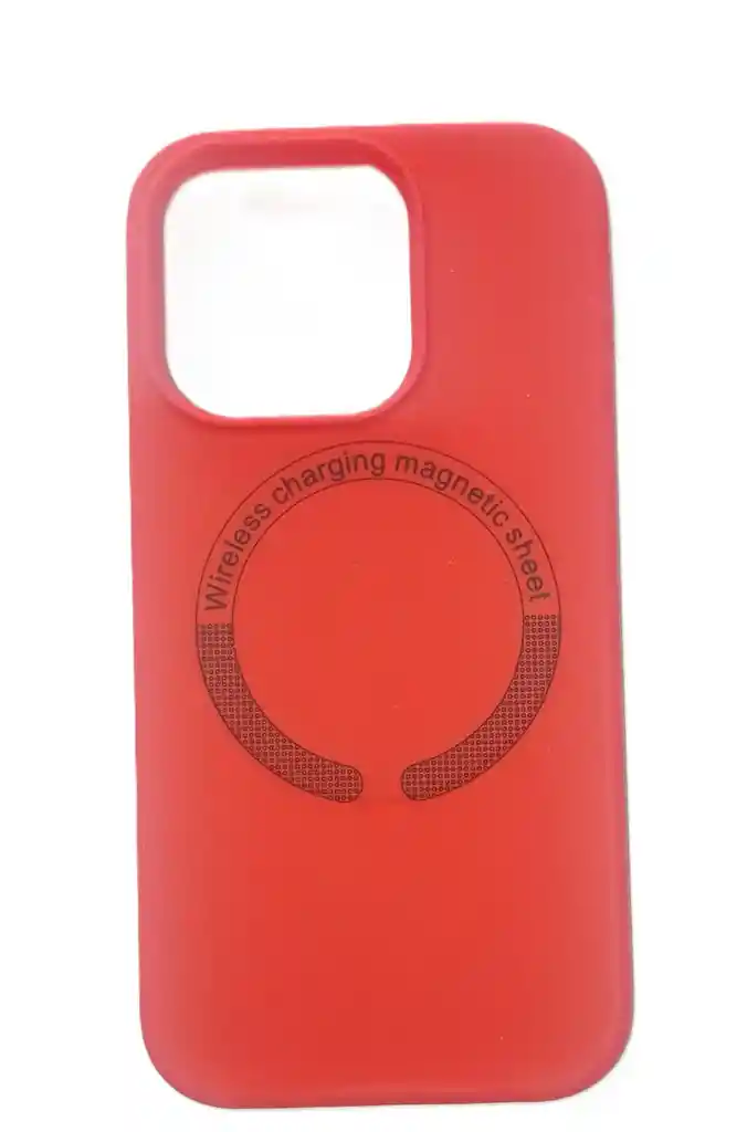 Carcasa para iPhone 14 Pro, material silicona, color roja, agradable al tacto, duradera, capa de microfibra por el lado interno, con capacidad para carga inalámbrica (aro para carga inalámbrica magsafe).