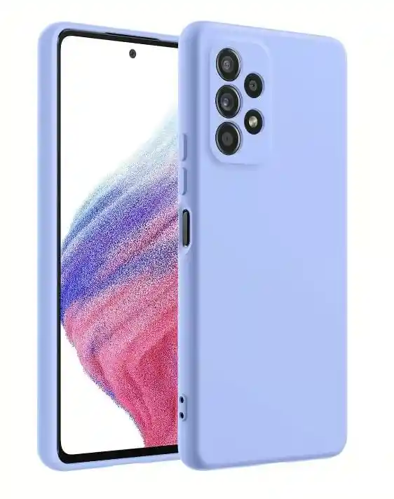 Carcasa Para Samsung Galaxy A53 5g, carcasa tipo original, material silicona, color lavanda, con gamuza por dentro y protector de cámara.