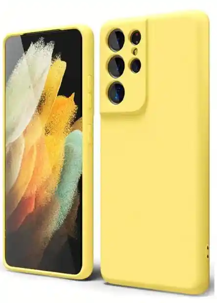 Carcasa Para Samsung Galaxy S21 Ultra, carcasa tipo original, material silicona, color amarilla, con gamuza por dentro y protector de cámara.