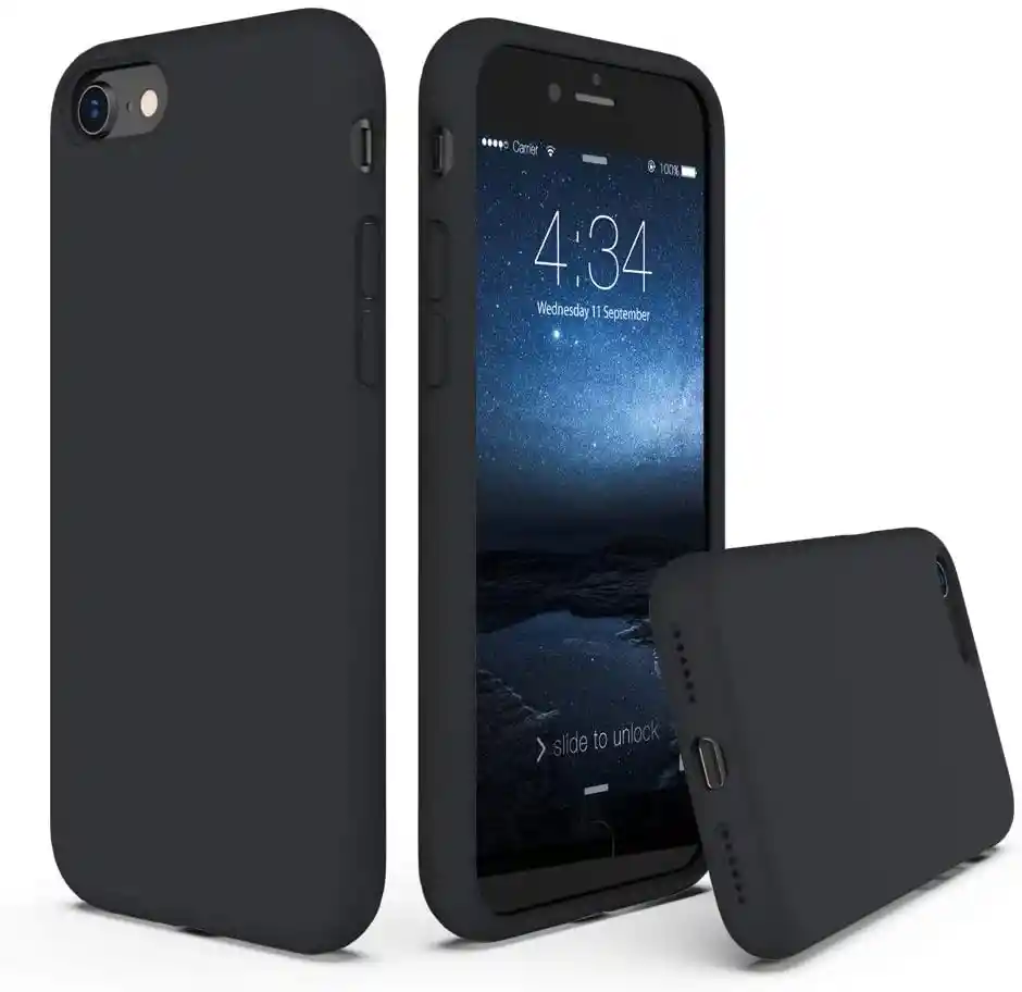 Carcasa tipo original con gamuza por dentro y protector de cámara, apta para cualquiera de los siguientes modelos: IPhone 7, IPhone 8 y IPhone SE 2020, color negro.
