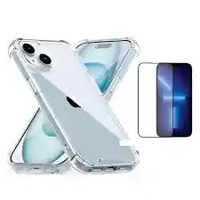 Carcasa transparente para iPhone 14 Pro Max de esquinas reforzadas, cubre de forma parcial la cámara tal como aparece en las imágenes.