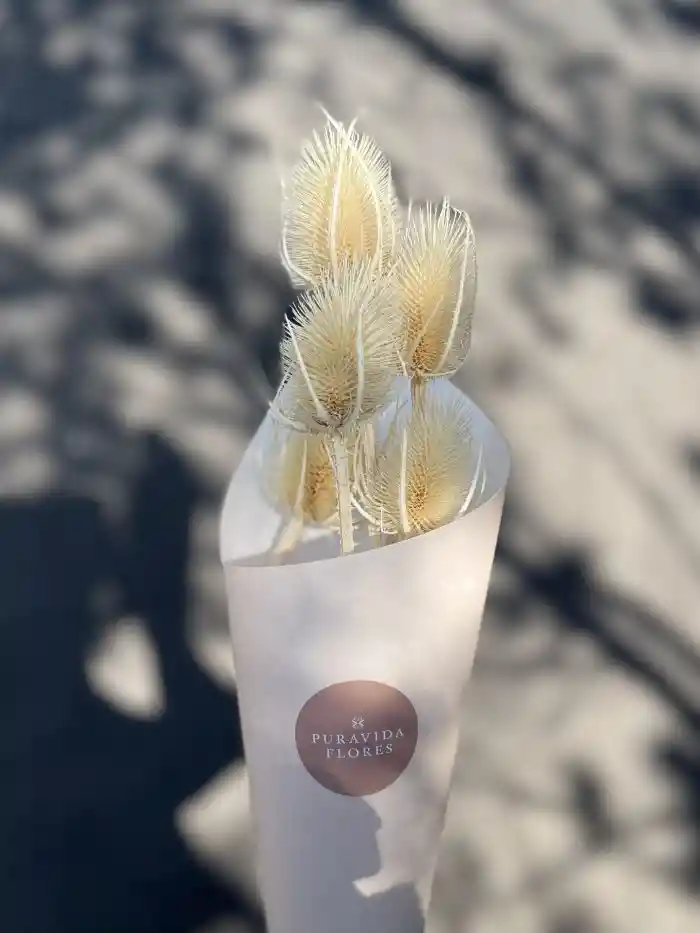 Incluye 5 varas de Cardos Blancos secos. Largo aproximado 40 cms. Todos nuestros productos secos y preservados han sido cuidadosamente seleccionados e importados desde Holanda para ti. Además todos han sido cultivados, cosechados y producidos de manera manual para garantizar la mejor calidad y color, respetando las normativas eco-sustentables europeas. Nuestros productos pueden durar varios años si se cuidan de la manera correcta evitando el sol directo, cambios de temperaturas muy abruptos, exposición a espacios húmedos, contacto directo con el agua, inadecuada manipulación, entre otros.