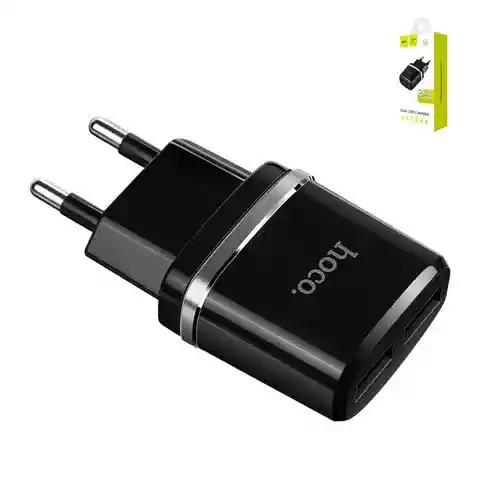Cargador de Pared Hoco C12 12W con Doble Puerto USB – Compacto, Seguro y Versátil Mantén tus dispositivos siempre cargados con el cargador de pared Hoco C12, una solución inteligente que combina eficiencia y diseño compacto. Con dos puertos USB y una salida total de 12W (2.4A por puerto), este cargador es perfecto para alimentar smartphones, tablets y otros dispositivos electrónicos de manera rápida y confiable. Fabricado con materiales premium como ABS+PC ignífugo y tecnología de oxidación de aluminio, el Hoco C12 garantiza resistencia y seguridad, incluso con un uso prolongado. Su sistema de protección integrado contra sobrecargas, cortocircuitos y sobrecalentamiento asegura que tus dispositivos estén siempre protegidos. Características destacadas: Doble puerto USB: Permite cargar dos dispositivos simultáneamente sin comprometer la velocidad de carga. Compatibilidad universal: Enchufe europeo (AC 100-240V, 50/60Hz) apto para diferentes regiones. Diseño robusto: Materiales resistentes al calor y al desgaste para mayor durabilidad. Carga eficiente y segura: Salida estable de 12W con 2.4A por puerto para proteger tus dispositivos. Portátil y liviano: Con solo 38g, es ideal para uso en casa, en la oficina o durante tus viajes. El cargador Hoco C12 no es solo funcional, sino que también está diseñado para adaptarse a tu estilo de vida. Compacto, resistente y seguro, es la herramienta perfecta para mantener todos tus dispositivos cargados en cualquier momento. ¡Hazlo tuyo y lleva la carga al siguiente nivel!