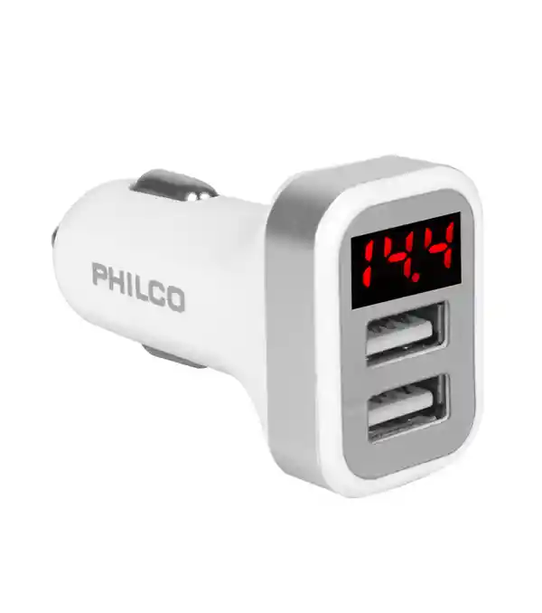 CARGADOR AUTO DOBLE USB CON PANT LED Marca del cargador: Philco Modelo del cargador: 7912V-LD31A Tipo de conector: USB 2.0